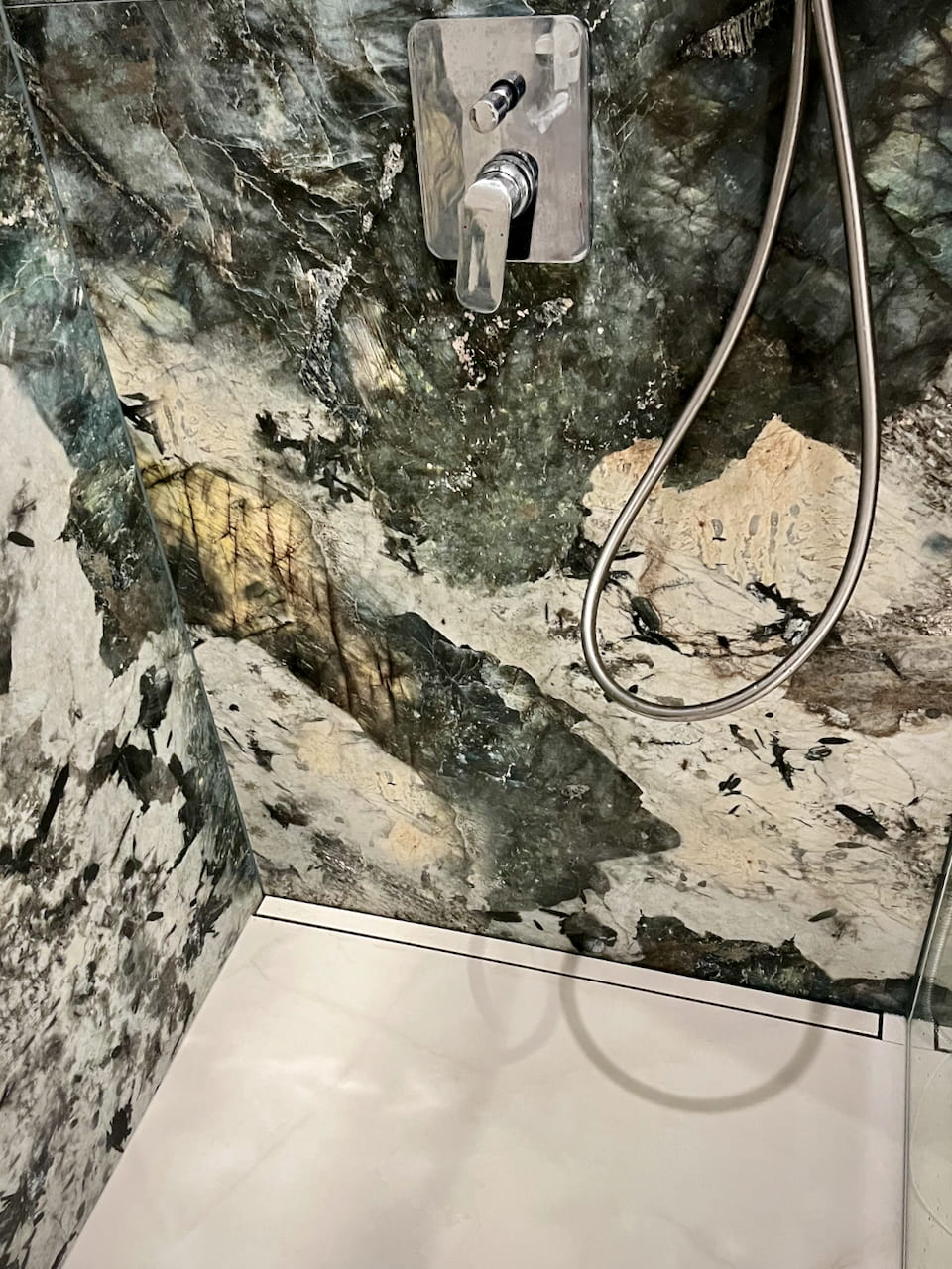 Prysznic z odwodnieniem liniowym, wymaga szczególnej uwagi przy uszczelnieniu. Zgodnie z normą DIN 18534, powierzchnie posadzek natrysków bez brodzika są pod tym względem obciążone szczególnie mocno i wymagają wykonania hydroizolacji zgodnej z klasą ekspozycji W2-I.