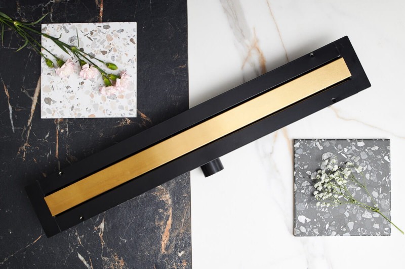 Odpływ Liniowy Naturalne Złoto Szczotkowane - Super Niski - LINE PRO - Brushed Natural Gold