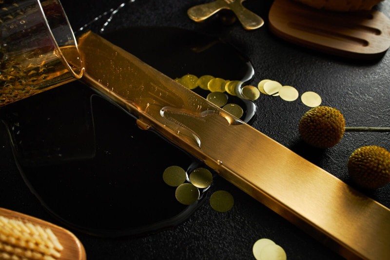 Brushed Natural Gold czyli odpływ liniowy przyścienny LINE PRO w kolorze złotym ze szczotkowanym wykończeniem definiuje na nowo pojęcie wyrafinowania. Ta szlachetna powierzchnia stworzona w technologii PVD to fuzja klasycznego złota z delikatnie szczotkowaną strukturą. Unikalna powłoka zapewnia nie tylko elegancki, subtelnie połyskujący efekt wizualny, ale też niezrównaną trwałość i odporność na zabrudzenia.