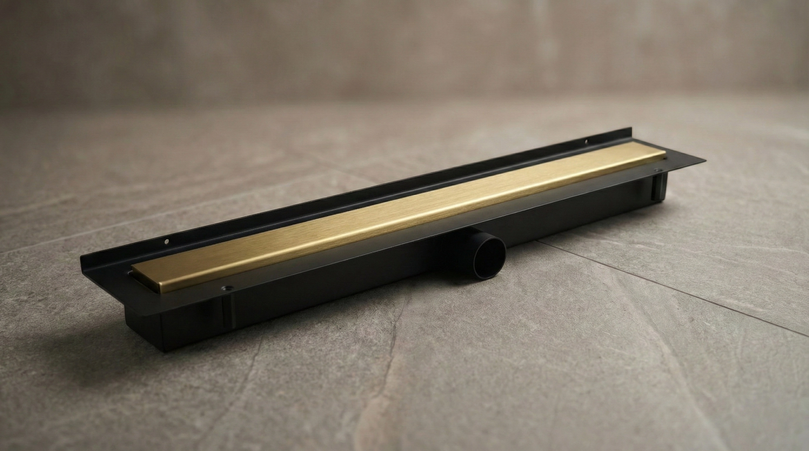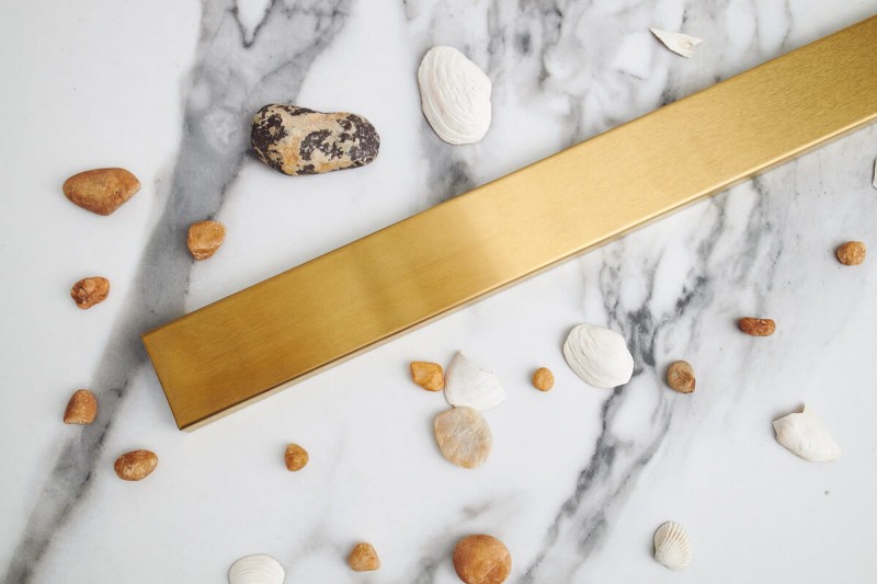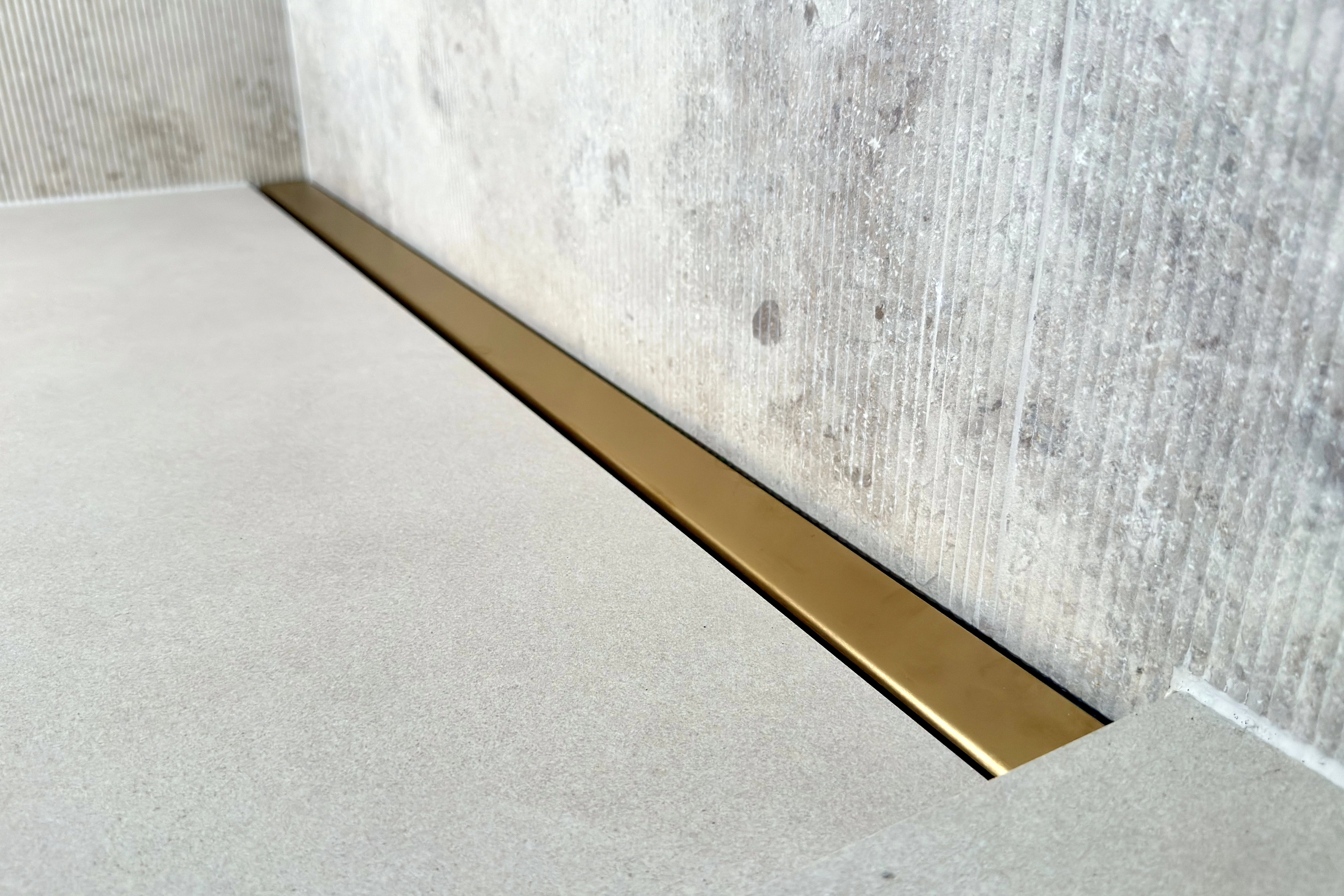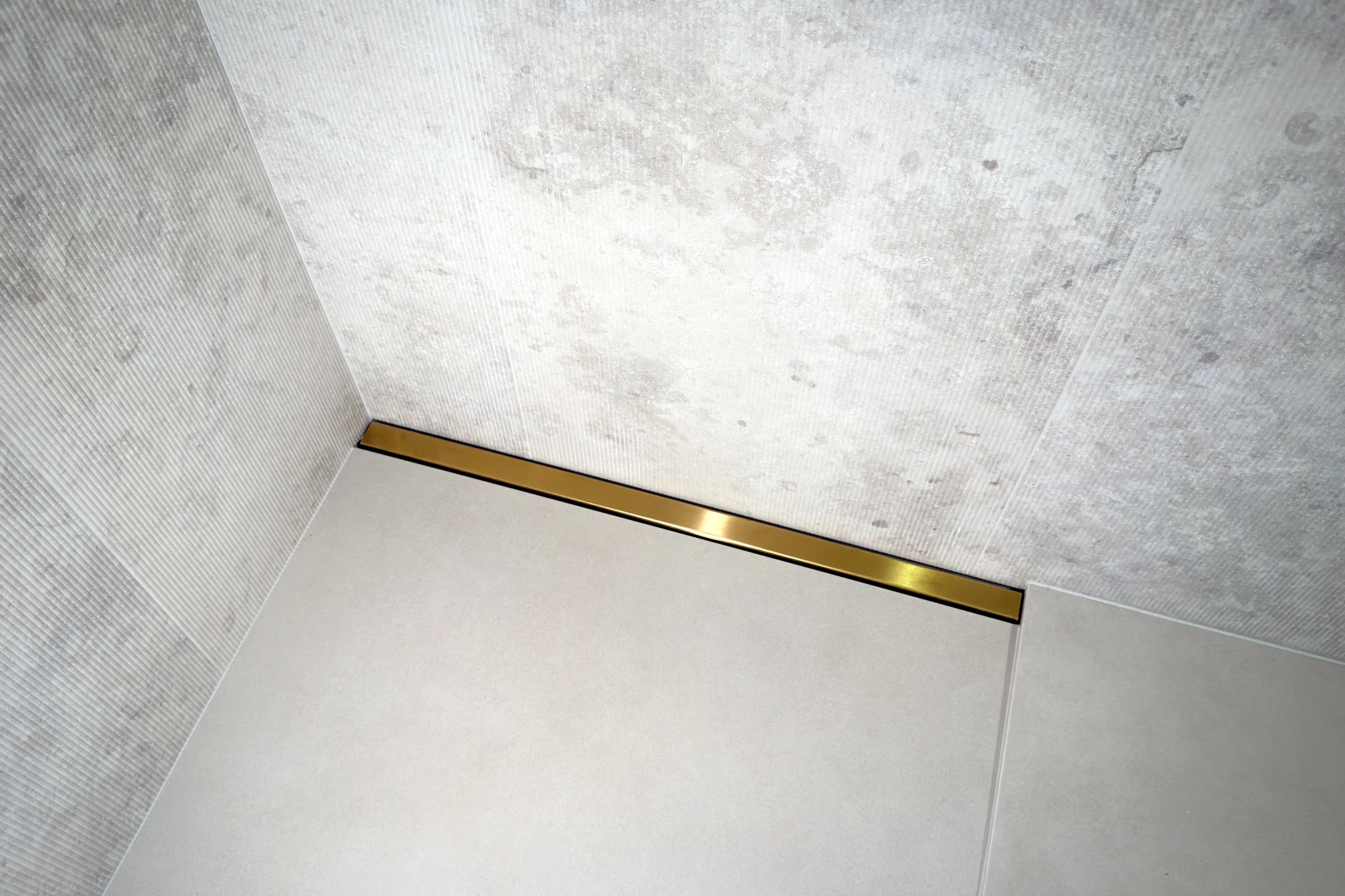 Odpływ Liniowy Przyścienny Naturalne Złoto Szczotkowane - Super Niski - LINE PRO - Brushed Natural Gold