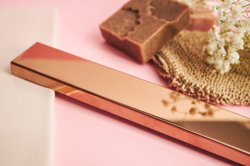 Chrome Rose Gold czyli odpływ liniowy przyścienny LINE PRO w kolorze różowego złota z błyszczącym wykończeniem definiuje na nowo pojęcie elegancji. Ta wyjątkowa powierzchnia stworzona w technologii PVD to połączenie ciepłego koloru z luksusowym połyskiem. Unikalna powłoka zapewnia nie tylko fascynujący efekt wizualny, ale też niezrównaną trwałość i odporność na zabrudzenia.