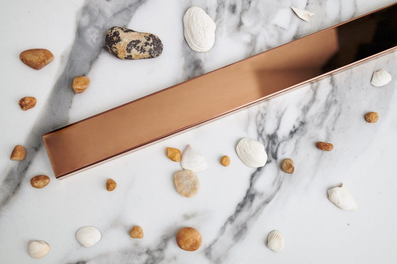 Odpływ Liniowy Przyścienny Różowe Złoto Błyszczące - Super Niski - LINE PRO - Chrome Rose Gold
