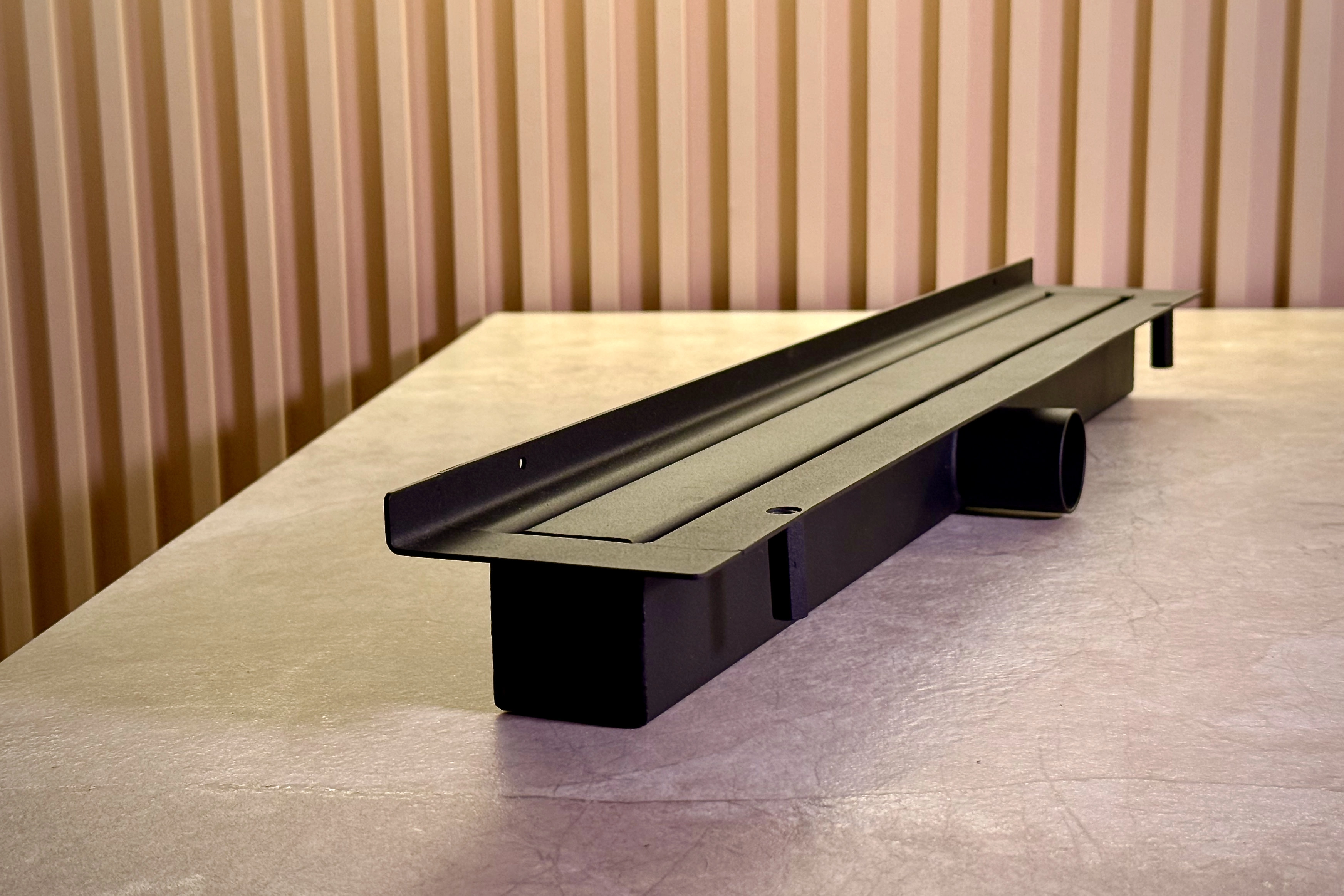 odpływ liniowy przyścienny pod zabudowę czarne odwodnienie liniowe